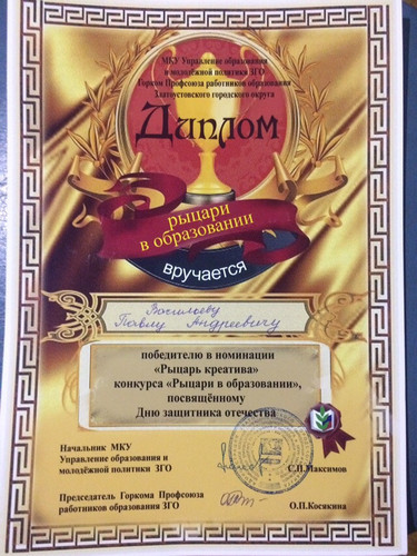 Поздравляем Павла Андреевича Васильева, победившего в номинации "Рыцарь креатива" городского профсоюзного конкурса "Рыцарь в образовании"!